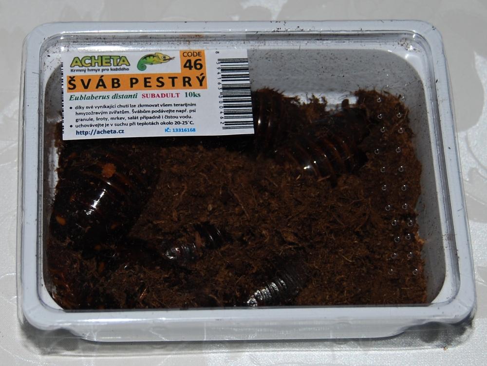 Šváb pestrý Eublaberus distanti. Dodáváme ve velikosti subadult až dospělce. Dorůstá velikosti 4-5 cm. Balení 10kusů v plastovém obalu.
